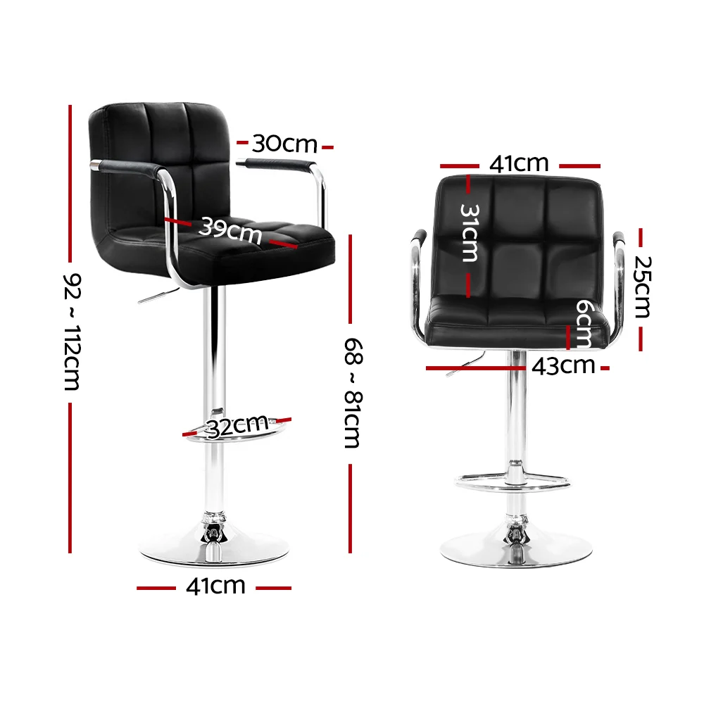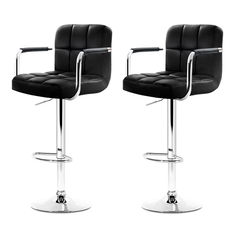 These modern bar stools are sure to complement any household and will be a great addition to a kitchen and dining setting. Upholstered in faux leather, the bar stools also feature an extra thick foam padding seat for ultimate comfort. The semi-circular footrest ensures relaxed sitting while the omni-directional seat makes for easy turn to any facing. Better still, the height can be easily adjusted with the SGS-tested gas lift and the large base ensures stability at all times. Not least, a floor protector under the base helps to keep your pristine floor scratch-free at all times.