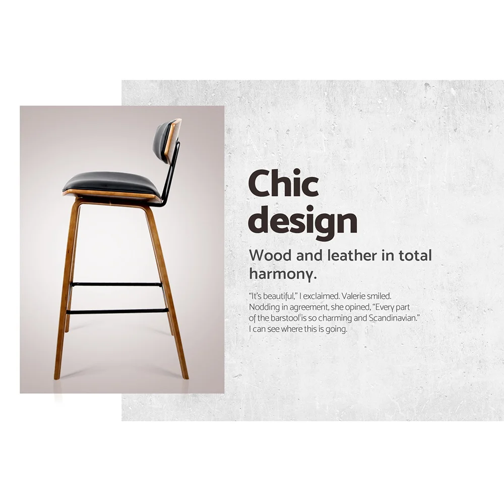 Meticulously crafted with solid wood in a stunning walnut finish for the legs and backrest, the Bentwood Bar Stool features a generous faux leather seat and backrest that feel comfortably plush and look absolutely classy. The wide backrest also provides appreciable enveloped support while the anti-slip rubber pads on the leg bottoms keep the stool steady and firm even with robust use. Not least, the power coated metal footrest rectangle lets you perch in style, feet up.
