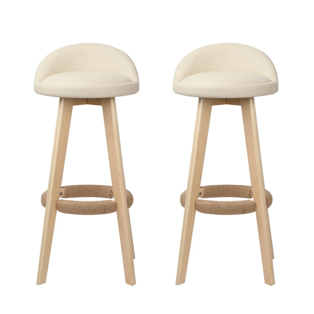 Featuring a luxe padded PU leather seat, these bar stools come with a wooden frame and low backrest for maximum comfort and style combined. Additionally, the stool swivels 360 degrees for easy movement and comes with rubber protectors at the base of the feet to stop your floors getting scratched.
