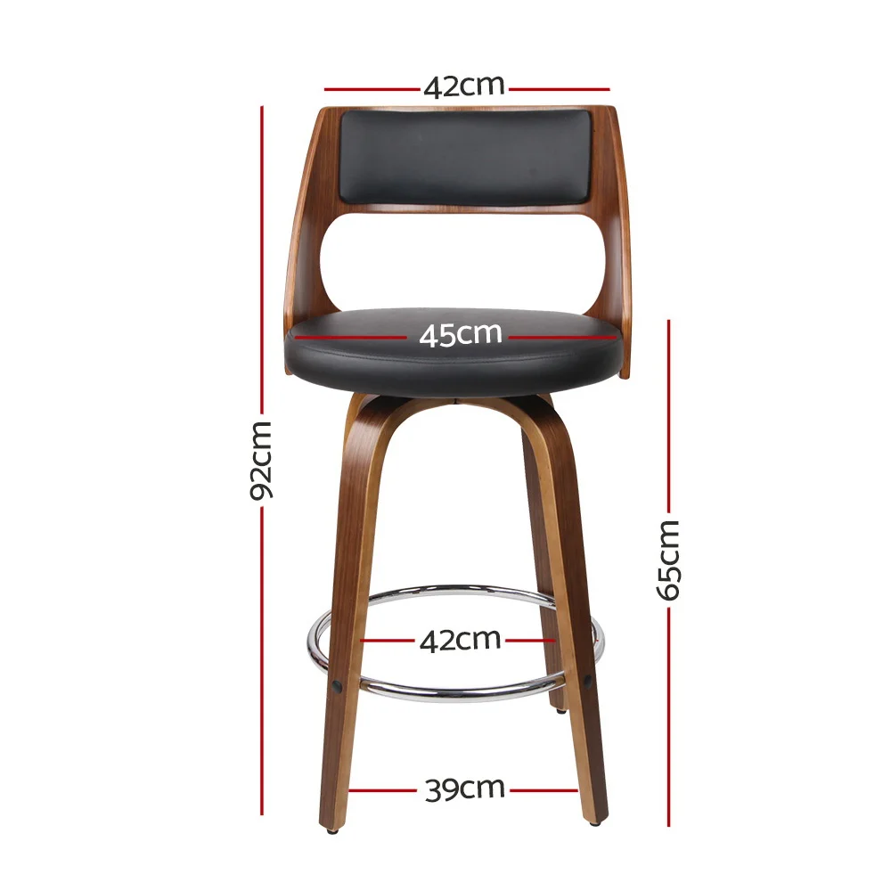 Meticulously crafted with solid wood in a stunning walnut finish for the legs, these stools feature a large faux leather seat and backrest that feel so sleek and comfortable. The mid-height backrest provides support while the anti-slip rubber pads at the bottom of the legs stop your floor from being scratched.