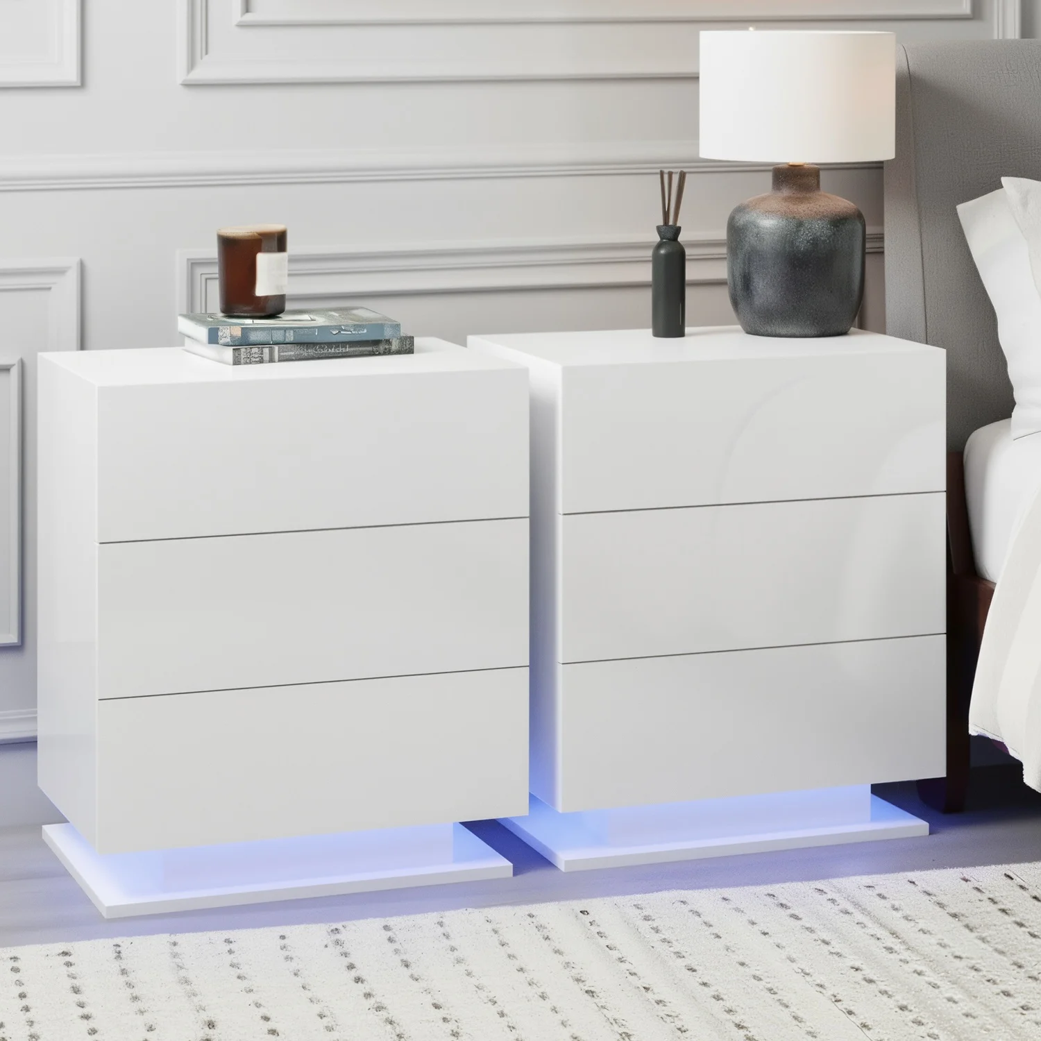 Tired of fumbling in the dark for a light switch in the middle of the night? With our Artiss LED Bedside Table, your problems are solved. The bedside table comes with built-in LED lighting that can be customised into 16 different colours and 4 different effects to suit your preference. Not only will it create a beautiful ambience, it will also save you from buying extra bedside lamps or nightlights. Three deep drawers sliding on smooth coated runners provide ample storage space. Better still, the handle-free design gives it a modern vibe that stands out from the mundane. Constructed from quality particle board and MDF with melamine finish and high-gloss UV front, the bedside table is durable and easy to maintain. And it will be the perfect addition to your modern bedroom with its contemporary and linear design. Or you can even keep one in the living room to wow all your houseguests.
