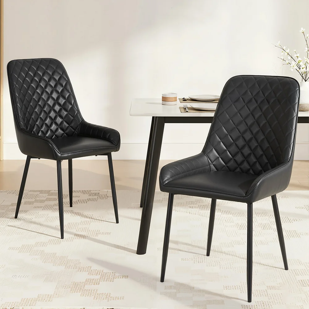 The seats are upholstered in high-quality PU leather and feature an eye-catching diamond tufted design that elevates the look. The ergonomic, curved support ensures maximum comfort, complemented by a generously padded seat for long hours of use.