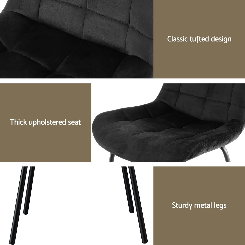 Add a touch of luxe comfort to your home with this stunning pair of Artiss dining chairs. Upholstered in a beautiful soft velvet fabric, these chairs feature an elegant grid tufted pattern that brings a sophisticated, inviting feel to any space.