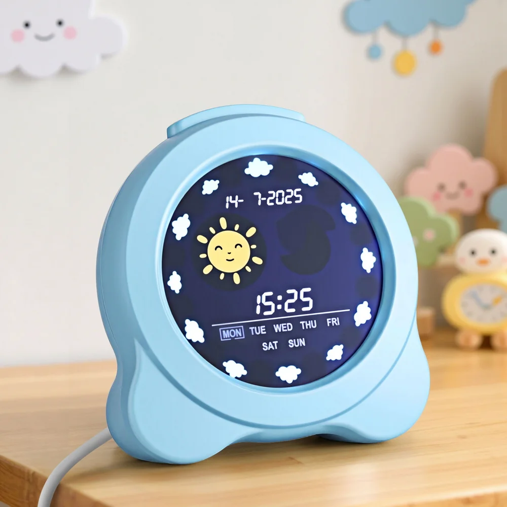 Empower your child's sleep independence with the Artiss Digital Day Clock. Its dual-alarm system lets parents set different wake times for weekdays and weekends, while 6 gentle nature sounds (like Seagull and frog) provide calm morning transitions. The automatic day/night display teaches time awareness: cheerful sun icons for active hours, soothing star patterns for bedtime. With 4 adjustable brightness levels, it doubles as a comforting night light, and the oversized 3.8-inch screen helps young readers track time easily. Snooze function teaches responsibility - perfect for transitioning from crib to big-kid beds!