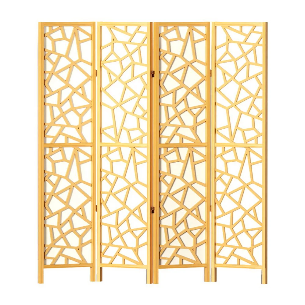 Artiss 4 Panel Room Divider Screen 174x179cm Bamboo Black White