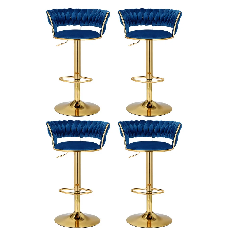2x Height Adjustable Swivel Bar Stool Velvet Golden Base Barstools Chairs Padded Seat- Blue