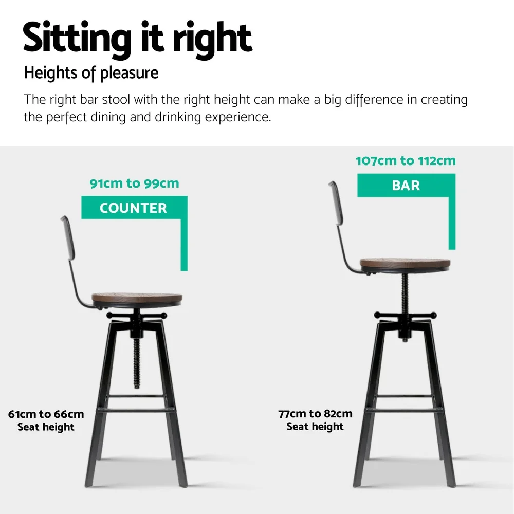 There are bar stools. So add a touch of industrial finesse to your home, office or café with our Angus Bar Stool. Crafted with an artistic mix of metal and wood, the Angus Bar Stool is a statement in fine quality and meticulous craftsmanship. The beautiful grain Elm wood seat is ever so smooth and cool whilst the contoured backrest wraps your back perfectly for exceptional support. With its 360 degree swivel seat, the Bar Stool is also height adjustable to suit your seating preference at the bar, kitchen counter or work studio. A convenient all-round footrest is integrated into the design while the anti-slip floor protectors keep your pristine floor free from scratches and damage. Not least, the Angus Bar Stool certainly looks stunning with its heavy metallic black finish from any angle. Go retro, go eclectic, go creative with the Angus Bar Stool. Get yours today.
