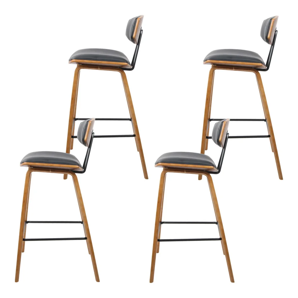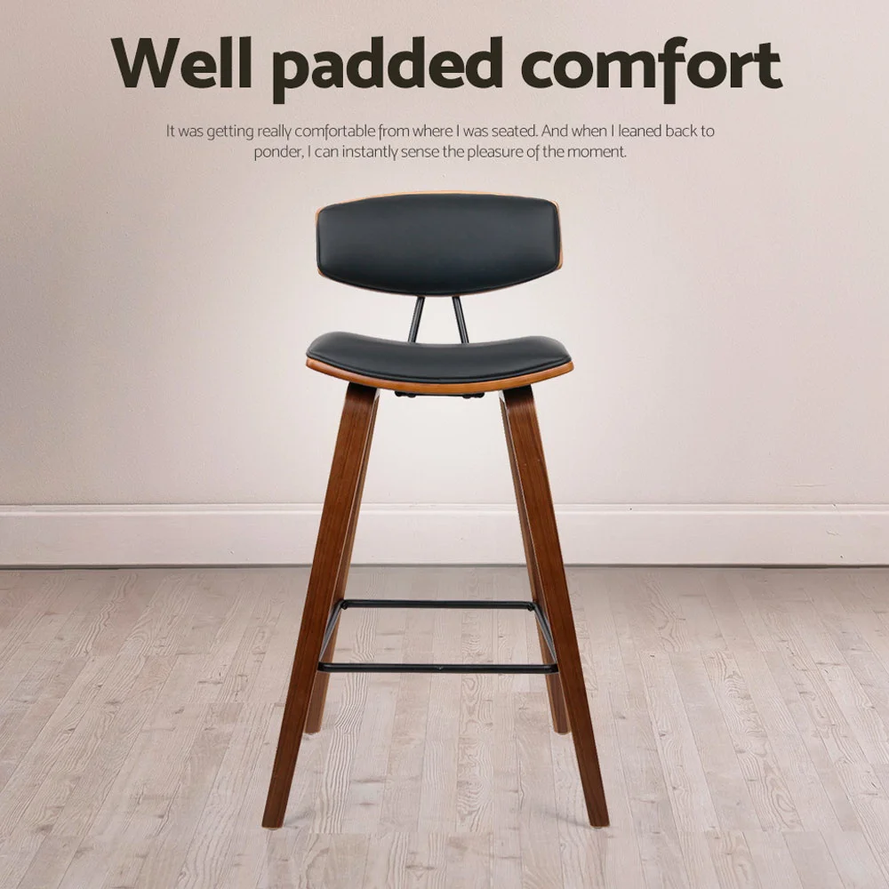 Meticulously crafted with solid wood in a stunning walnut finish for the legs and backrest, the Bentwood Bar Stool features a generous faux leather seat and backrest that feel comfortably plush and look absolutely classy. The wide backrest also provides appreciable enveloped support while the anti-slip rubber pads on the leg bottoms keep the stool steady and firm even with robust use. Not least, the power coated metal footrest rectangle lets you perch in style, feet up.