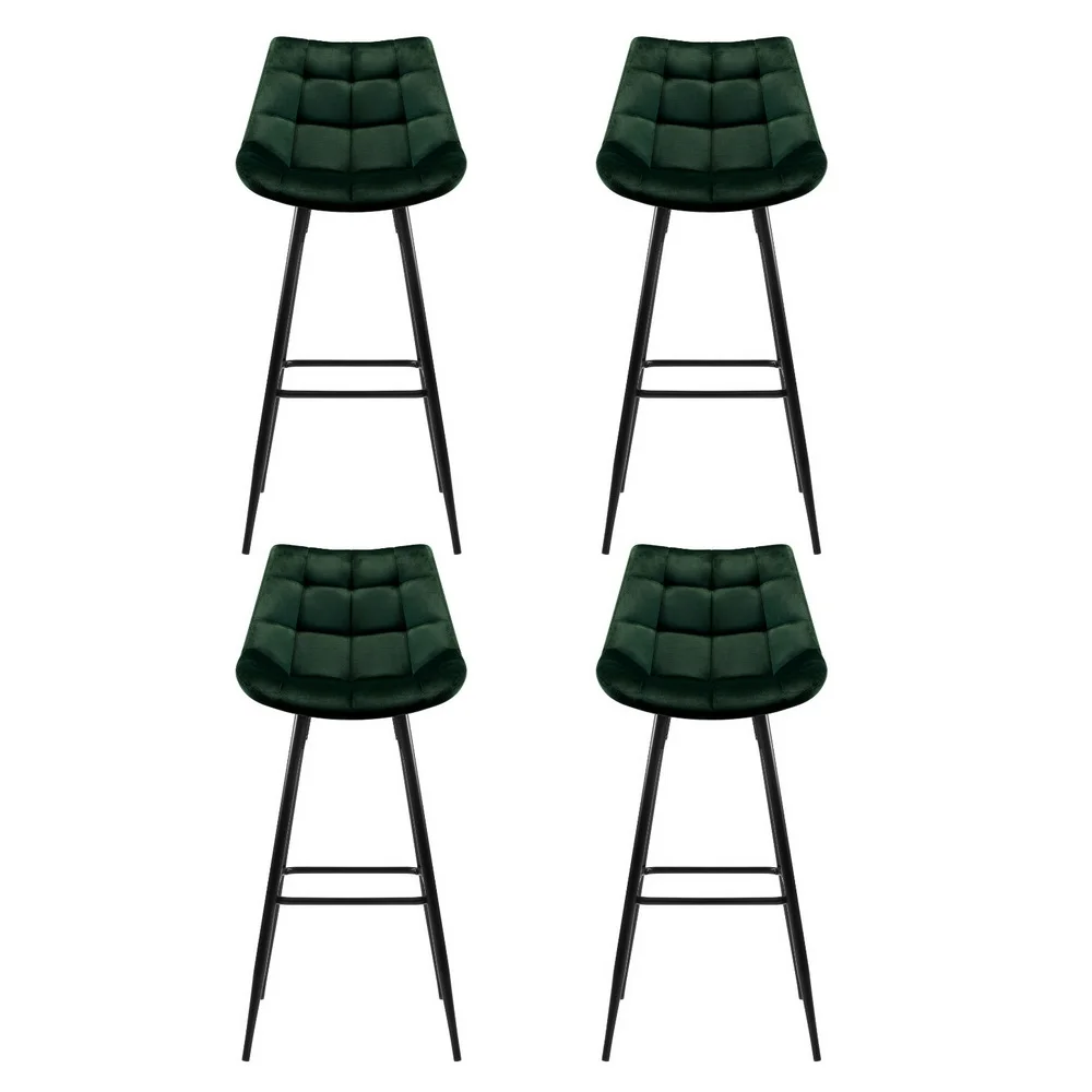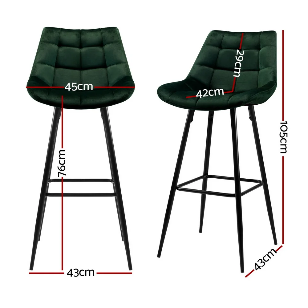 With its velvety and steely overtones, our Artiss Audrey Bar Stool is designed to look and feel good with every sitting. Meticulously crafted with heavy-duty metal with chic matt black finish, the bar stool features a tufted rich green velvet fabric integrated seat and backrest that feel comfortably smooth and look absolutely classy. The contoured backrest also provides appreciable support while the anti-slip rubber feet keep the bar stool firm and steady even with robust use. Not least, the metal footrest lets you perch in style, feet up. Perfect for your home, office, bar or cafe, our bar stool is a masterpiece of creative flair in more ways than one.