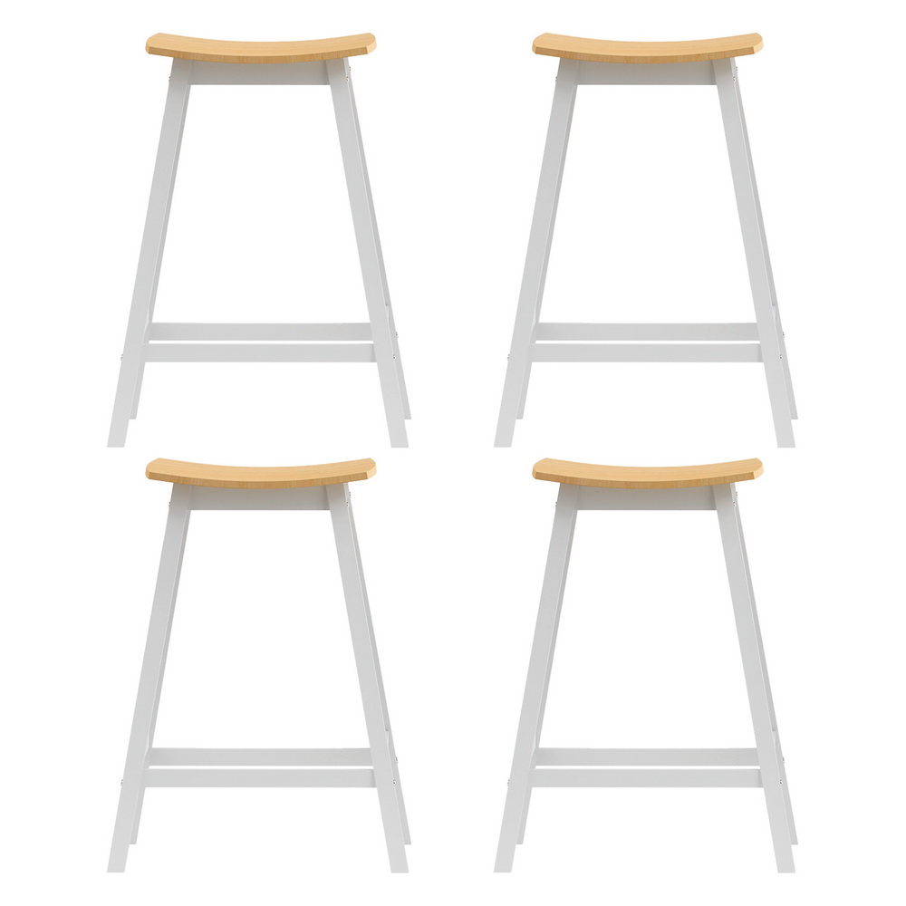 With their bright and stylish design, the Artiss Ari Bar Stool certainly stands out from the crowd. It features a solid pine saddle seat with a smooth finish and safe rounded edges that are pleasant to the touch. Framed by a durable powder-coated reinforced steel frame, the stools have a 150kg weight capacity and are rust-proof and made to last. With a rock-solid reinforced base, heavy-duty fixings and anti-slip feet, the stools will stay firmly in place throughout the evening even with robust use. These stools are equally at home in your kitchen as at the local pub or bar. Complete your bar setting with our Artiss Ari Bar Stools for a timeless and classic style that will suit any location.Note: Complete the look with an Artiss Alex Bar Table (white) for a cohesive aesthetic. FeaturesAri series bar stoolsSolid wood legsSaddle seat design150kg weight capacityAnti-slip floor protectorsSmooth edgesEasy assembly*Note: Bar table is available in-store. Specifications:Brand: ArtissMaterial: Seat: Plywood, Legs: PinewoodSeat height: 64cmOverall dimensions: 37cm x 34cm x 66cmColour: Pine WhiteWeight capacity: 150kgAssembly required: YesNumber of packages: Two Package ContentArtiss Ari Bar Stool x 4Assembly Manual x 1 This product comes with 1 year warranty