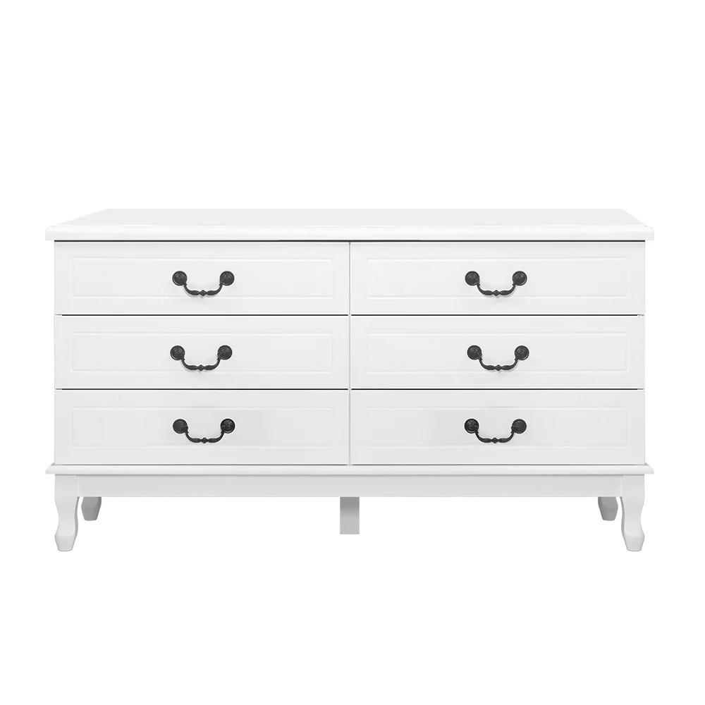 Add a touch of French provincial to your home with our charming KUBI Lowboy chest of drawers. It is not only the design that is timeless – the unit is made to both last and pleases, with 15mm thick MDF boards, beautifully curved pinewood legs, anti-rust drawer runners and vintage metal handles. Six large drawers provide plenty of storage for all your daily essentials so that everything is close at hand. The classic design means that this chest of drawers will suit any room, all year round! Better still, you can mix and match with other products from the KUBI series for a complete timeless style.