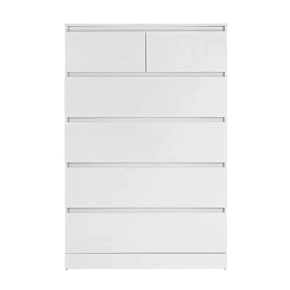 Introducing the Artiss Pepe Chest of Drawers, a contemporary piece to suit your modern bedroom. Made with a high-density particleboard frame for high durability, the chest of drawers is designed to last. With 6 spacious drawers, each fitted with a smooth glide mechanism, it provides ample storage to keep your space organized and clutter-free. The drawer runners feature an anti-rust coating to ensure ease of use. This chest of drawers, offering a blend of style and utility, is an unmissable addition to your furniture ensemble.