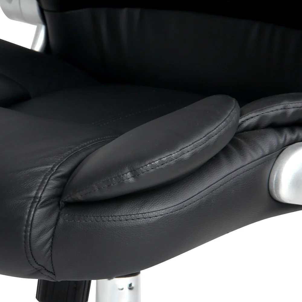 Naturally, the office chair itself is not short on exceptional qualities. A S-shape contoured backrest, tension tilt adjustment, and padded headrest and armrests all work in tandem to cup your body in complete luxury.