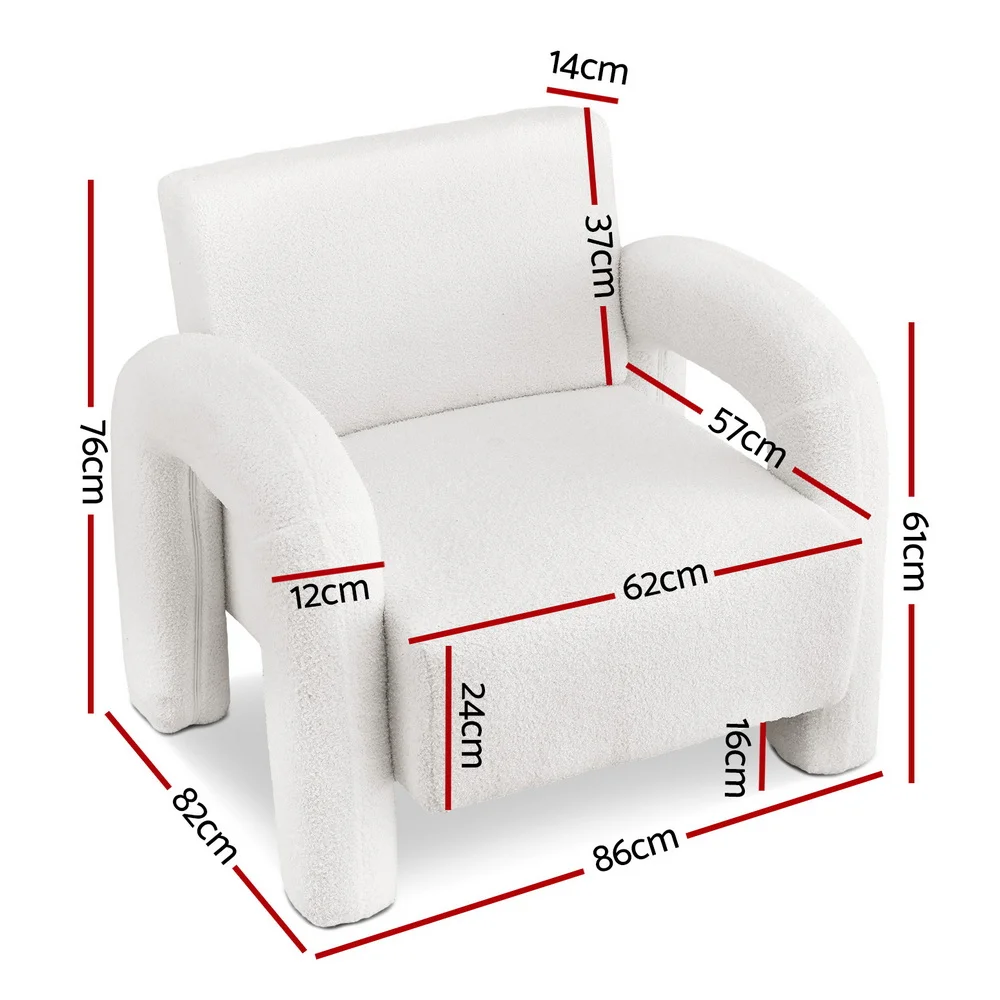 Upgrade your home with this Artiss accent armchair, designed for both comfort and style. Featuring a soft boucle upholstery, ergonomically curved armrests, and extra-thick cushions, it offers the perfect blend of luxury and support. The sturdy pine wood frame ensures long-lasting durability while the anti-slip feet pads protect your floors. With a weight capacity of 150kg and easy assembly, this chair is ideal for any living room, bedroom, or office. Add a touch of elegance and comfort to your space today!