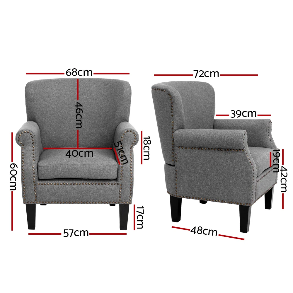 Iconic design. Timeless appeal. Our Artiss Oliver Armchair is the epitome of trendsetting style designed for the bold and passionate. The soft contoured lines and button studs decoration add a certain elegance to the design, making it appear both classic and modern and suitable for any décor. Upholstered in quality linen fabric, our armchair is a full-sized chair with generous sitting room. The extra thick foam padding and wide back ensures ultimate comfort with exceptional support. The armchair feet are fitted with pads to keep your floors pristine from scratches and damage. Together with a reinforced wooden frame and sturdy rubber wood legs, our armchair is guaranteed to stand up to durable use for many years to come.