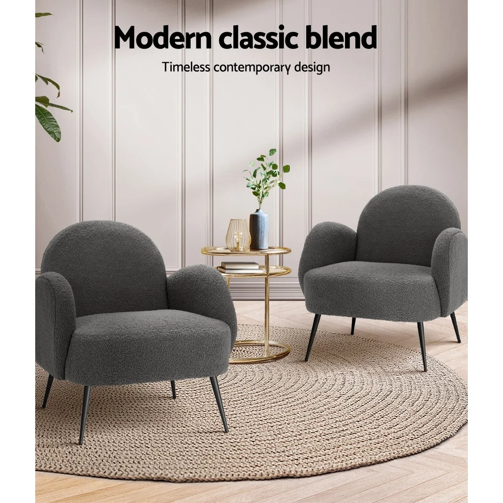 Snuggle up and fall in love with our most eye-catching Artiss Hanes Armchair. Not an ordinary one but stands out in every aspect, whether it's craftsmanship, style, upholstery, comfort, or quality that speaks for itself. It is something you would surely want to add to your space. It's perfect for your relaxation zone after a long, tiring day. Artiss Hanes armchair offers a wide and welcoming seat for you to relax and is ideal for every corner of your space where you want to add soft and comfy touches. Crafted with great attention to details, this armchair feature luxurious upholstery with high-resilience foam, extra thick padding, and solid structure. It is quite sturdy and will withstand the test of time. Our Hanes armchair is upholstered in soft polyester sherpa fabric that epitomises luxury with its smooth appearance and adds a cosy and relaxing feel to your space. Its cosy backrest with armrests creates an enveloping feel that makes you feel snuggled. Plus, the sturdy black splayed steel legs with floor protectors will offer optimum stability and protection to your floors and add a luxurious charm to your space with its gorgeous presence. Our Hanes armchair is super comfortable to relax on and possess stylish, elegant, and contemporary good looks, making it a must-have piece of furniture for your home.