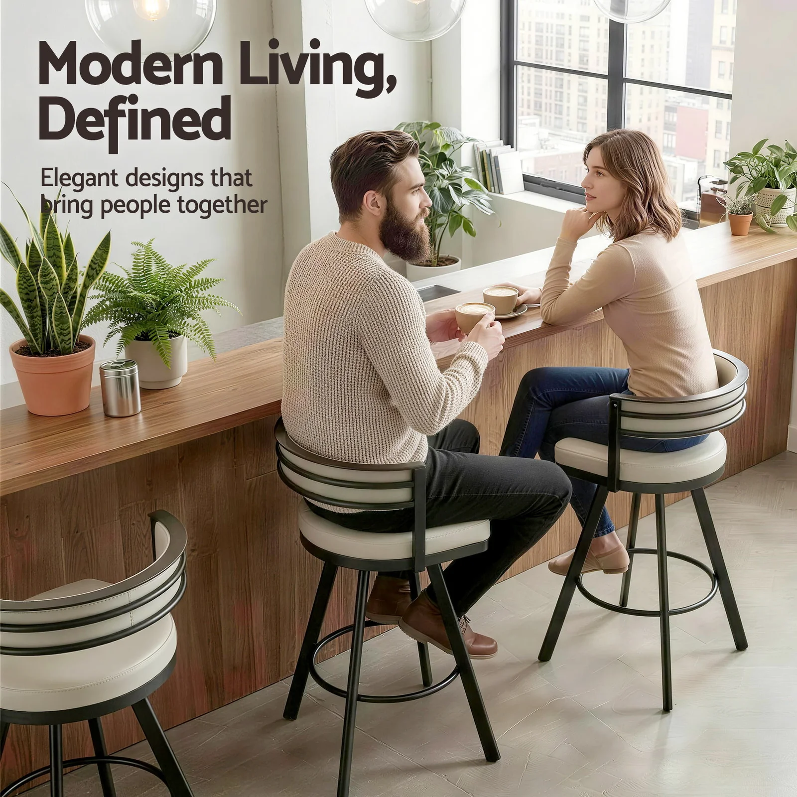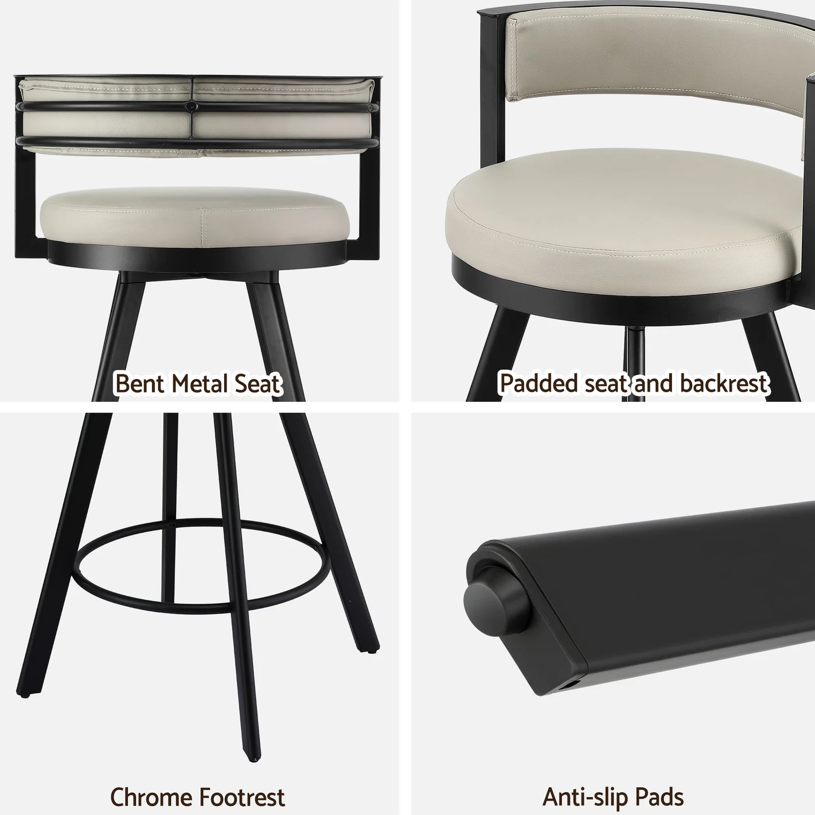 Upgrade your space with the Artiss Swivel Bar Stool. Featuring deluxe PU leather, a padded backrest, and a 360-degree seat, this counter chair offers great comfort. Supported by sturdy metal legs and anti-slip pads. Perfect for any modern kitchen bench, bar, or cafe.