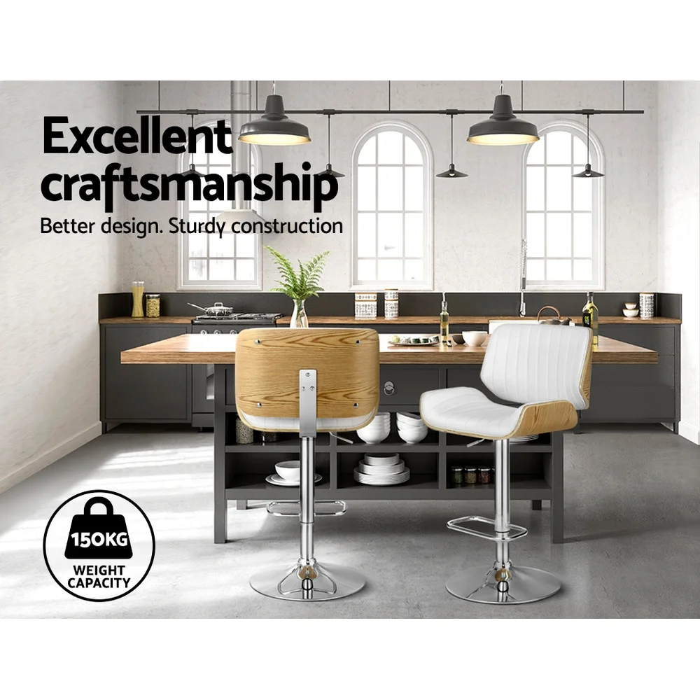 Want to add an elegant and contemporary feel to your space? Artiss' Galina bar stools with elegant wood grain finish are just perfect. They're great for catchups over coffee with friends, a jam session with the band, or daily living. Not an ordinary one but stands out in every aspect, whether it's craftsmanship, style, upholstery, comfort, or quality that speaks for itself. It is something you would surely want to add to your space. You can style our Galina bar stools anywhere, from living rooms to kitchen and the bar section, they will effortlessly fuse in any d�cor and lend an elegant and contemporary feel to your space. Featuring curved bentwood seat with premium PU leather upholstery, our bar stools have soft padded seats, solid rectangular footrest, sturdy black powder-coated/chrome pedestal base, SGS-tested gas lift for height adjustment, and floor protectors for ultimate stability and scratch-free floors. They also feature 360? rotatable seat so you can face any direction for ease of conversing with guests and family. Our Galina bar stools make a timeless piece of furniture, and with two colour options, you can choose that best complements your space and suits your taste. Artiss' Galina bar stools would make a luxurious addition to your space. Shop them today!