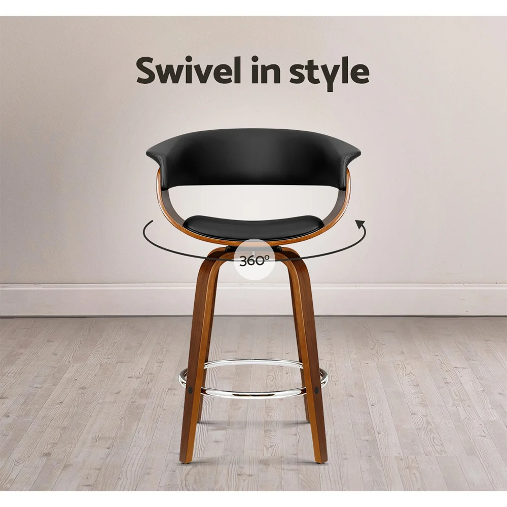 Wood, metal and deluxe PU leather in total harmony to create a luxe feel. Meticulously crafted with solid plywood with a stunning walnut finish for the frame, the bar stool features a thick padded faux leather seat that rotates fully, a mid-height backrest which provides ample support while the anti-slip floor protectors at the bottom of the legs ensure no scratches are left on the floor.