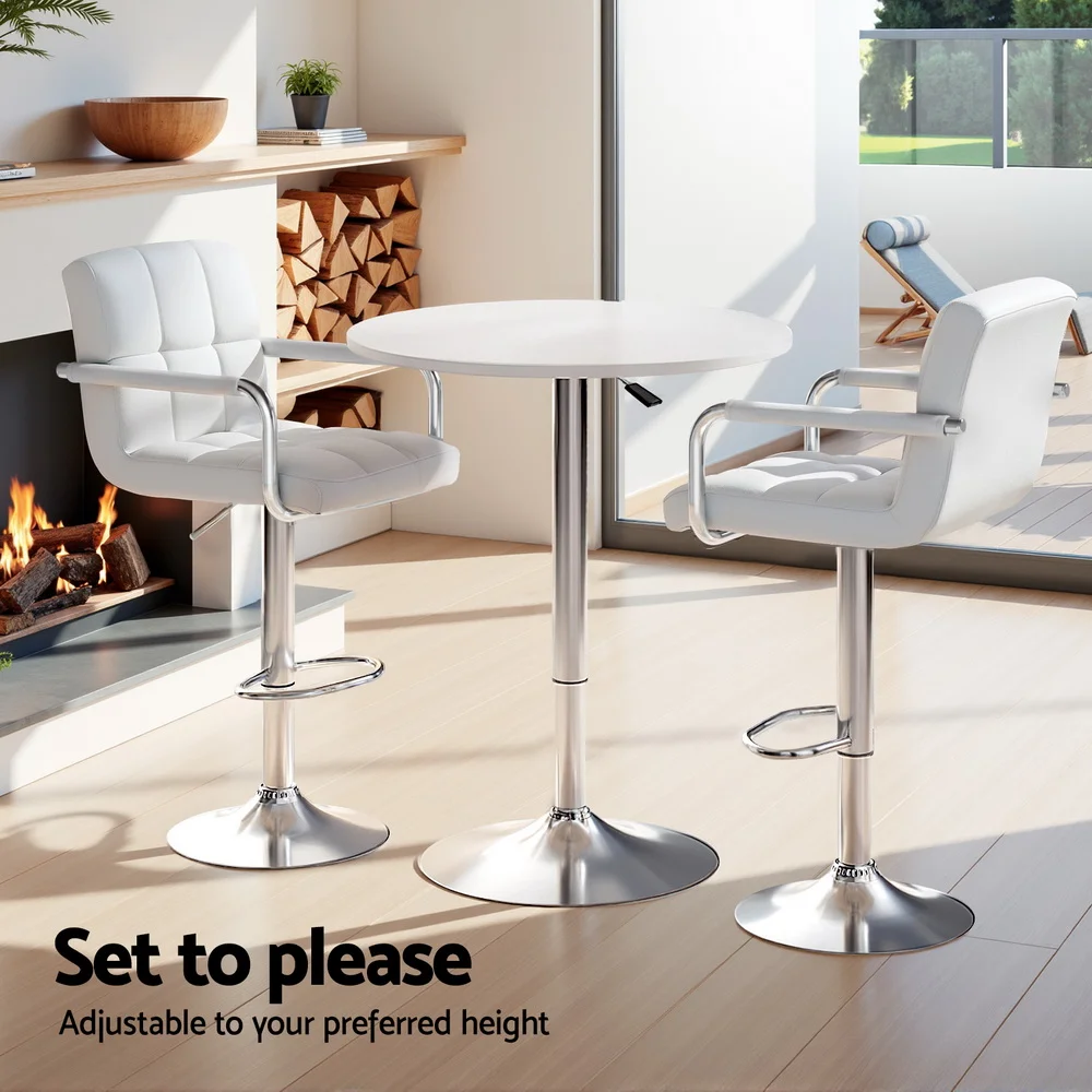 Upgrade your space with the Artiss bar table and stools set, blending contemporary style with functionality. The stools feature a 360-degree swivel and height-adjustable SGS-certified gas lift for personalized comfort, while the sturdy base and floor protectors ensure stability and surface care. Easy-to-clean surfaces and accessible gas lifts make maintenance a breeze. Perfect for both indoor and outdoor settings, this versatile set is ideal for residential or commercial use, offering durability and modern design in one sleek package.