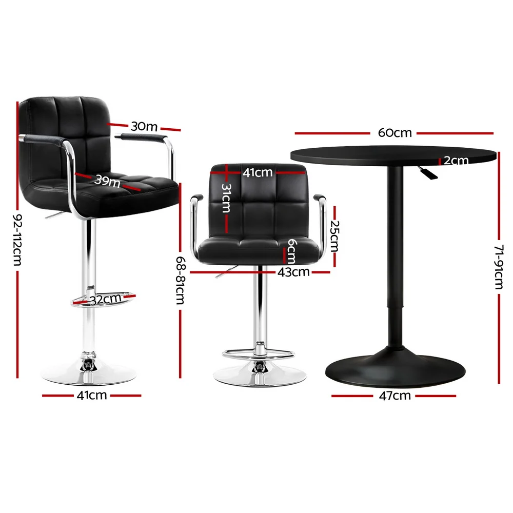 Upgrade your space with the Artiss bar table and stools set, blending contemporary style with functionality. The stools feature a 360-degree swivel and height-adjustable SGS-certified gas lift for personalized comfort, while the sturdy base and floor protectors ensure stability and surface care. Easy-to-clean surfaces and accessible gas lifts make maintenance a breeze. Perfect for both indoor and outdoor settings, this versatile set is ideal for residential or commercial use, offering durability and modern design in one sleek package.