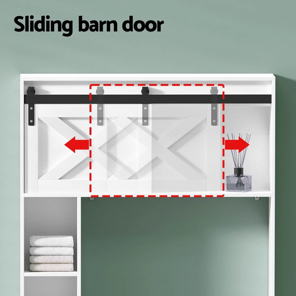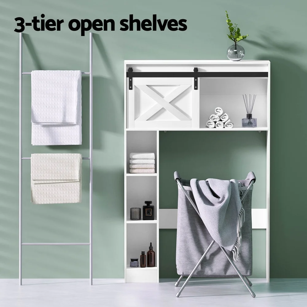Keep your bathroom organised with an Artiss Bathroom Storage Cabinet. This neat and tidy storage solution is made from durable particleboard for long-lasting use. With three tiers of open shelving and two top cabinets with a sliding barn door, the unit gives you plenty of storage for your bathroom essentials. The entire piece sits neatly over standard toilets, or you can place it over your laundry basket or other storage for ultimate convenience. Easy to install and easy to clean, the Artiss Bathroom Storage Cabinet is just what your bathroom needs to stay tidy.