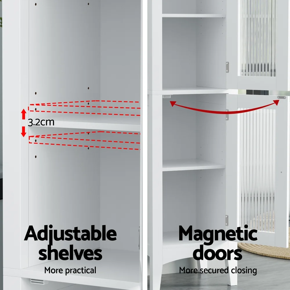 The Artiss Bathroom Storage Cabinet is the perfect space-saving solution with style and functionality. Its slim, vertical design fits seamlessly into tight spaces, while the large-capacity storage includes five-tier shelves enclosed by tempered glass doors for a modern and practical touch. The clean white finish effortlessly complements most d��cor styles.Crafted for durability, the cabinet is made from sturdy MDF with a painted finish that's easy to clean. Adjustable shelves inside allow for flexible storage, while the anti-toppling device and elevated base provide added stability. Magnetic doors with nickel handles ensure smooth operation, making this cabinet a versatile choice for bathrooms, bedrooms, and beyond.