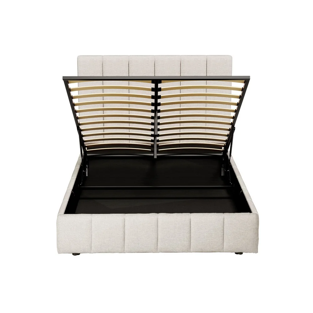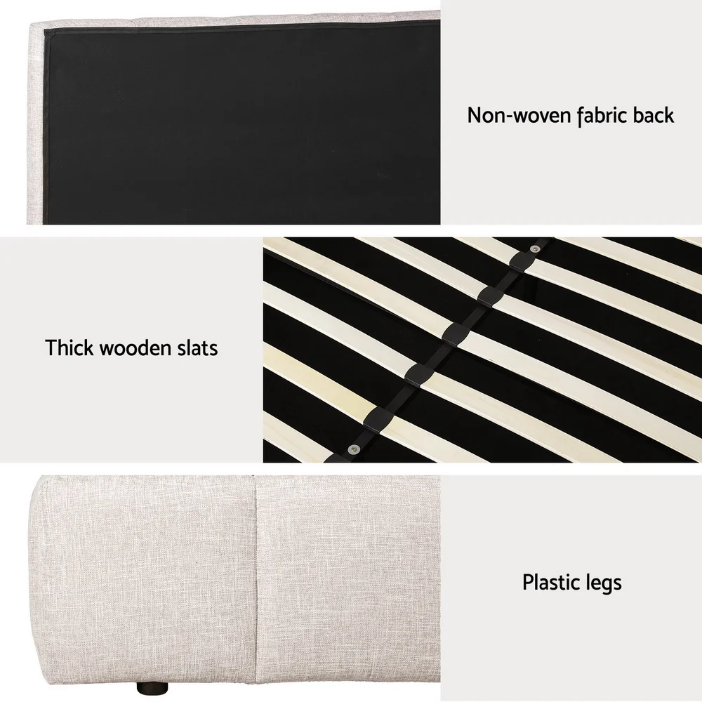Take restful nights to a new level with the Tette bed frame. Constructed with solid hardwood with sturdy slats, this frame provides ample support, giving you peace of mind as you drift off to dreamland. Upholstered in premium beige linen fabric, it offers comfort in style. Sleep soundly, feel cozy, and look fabulous with the Tette bed frame!