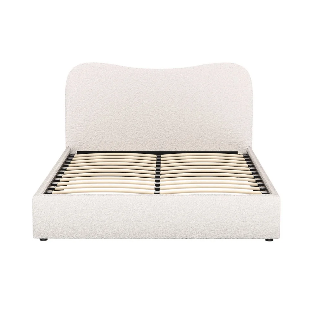 Introducing our elegant Artiss bed frame: upholstered in boucle fabric, featuring wooden frame with slat support, padded headboard, smooth edge finish, and sturdy metal connectors for a blend of style and functionality in your bedroom.
