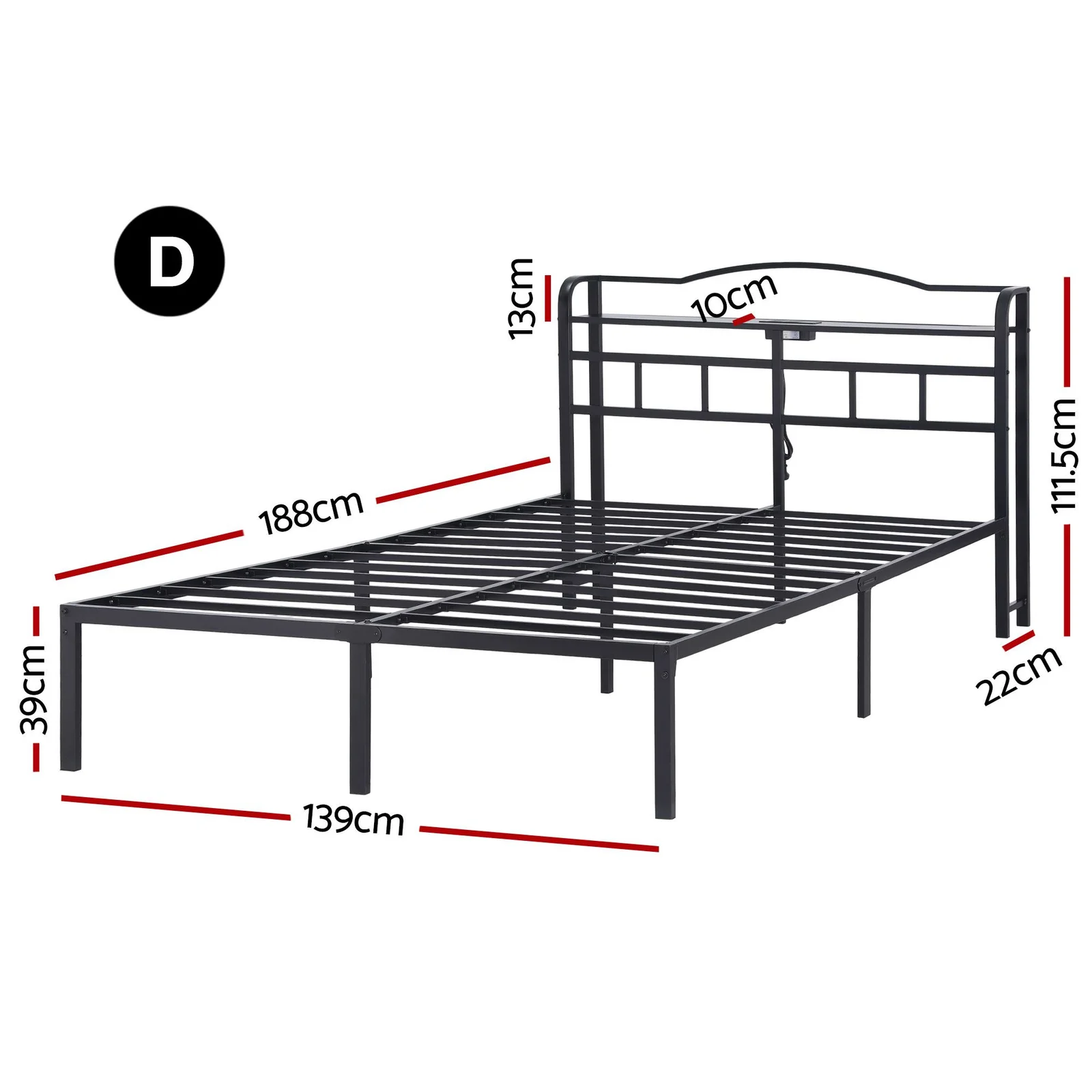 This Artiss premium Double size bed frame combines practical functions, modern style and comfortable experience to upgrade your bedroom. It is built with an integrated charging station including 2 AC outlets, Type-C and USB ports, so you can charge your devices anytime without hassle. The MDF headboard provides storage place to keep your daily items within reach. With rounded corner design, this bed ensures maximum safety by avoiding sharp bumps. The simple buckle design makes assembly fast and easy. Ideal for bedrooms, guest rooms and apartments.