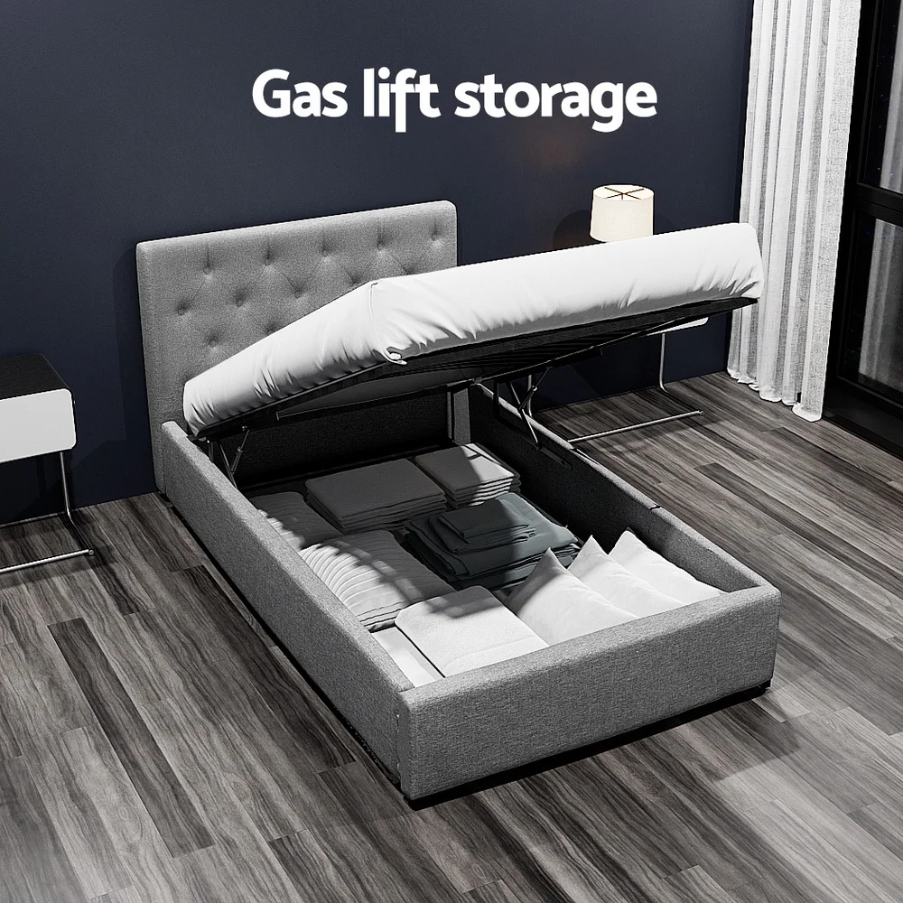 Milano Luxury Gas Lift Bed Frame Base And Headboard With Storage - King - Grey