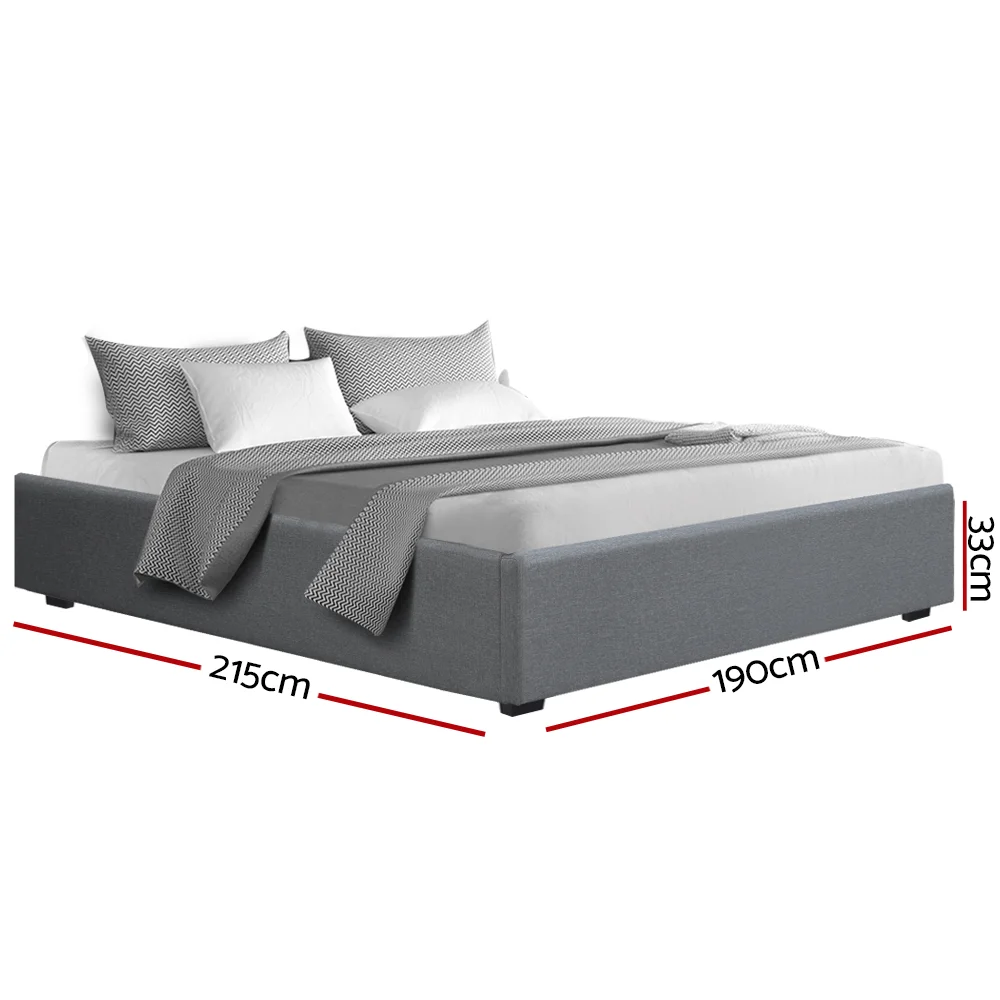 Our Toki Gas-Lift Bed Frame combines exquisite style with great storage practicality. The frame is built with reinforced steel construction while the wooden arched slat frame helps to distribute weight evenly across the framework. Heavy-duty connectors are used throughout the frame to increase its durability and reliability with long -term robust use. And for an elegant finish, the bed frame is padded with high-density foam and upholstered with premium linen fabric. Best of all, the bed frame comes with a gas-lift storage system where you will find acres of space underneath the slatted frame to store all your bedroom and home essentials. And if so desired, the bed frame can be matched with our complementary bed head for a complete look. The bed frame is designed to fit standard Australian-sized mattress.