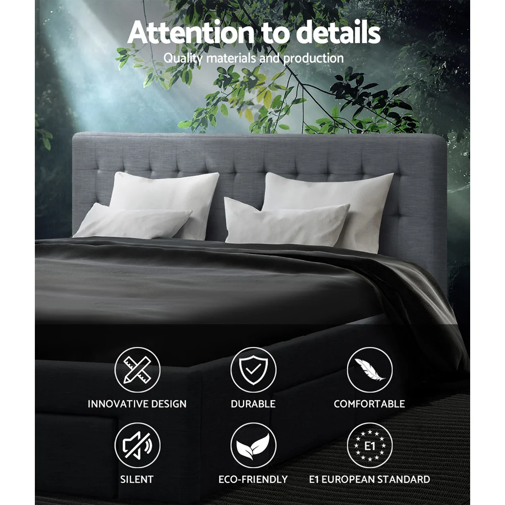 Constructed with a sturdy steel frame that's reinforced with metal bars and heavy-duty connectors, the Avio Bed Frame is also padded with high density foam and upholstered in premium faux linen fabric for a soft and comfortable touch. The Bed Frame features a wooden arched slat base that helps to distribute weight evenly across the frame and a centre support strut to provide added stability to the overall structure.
