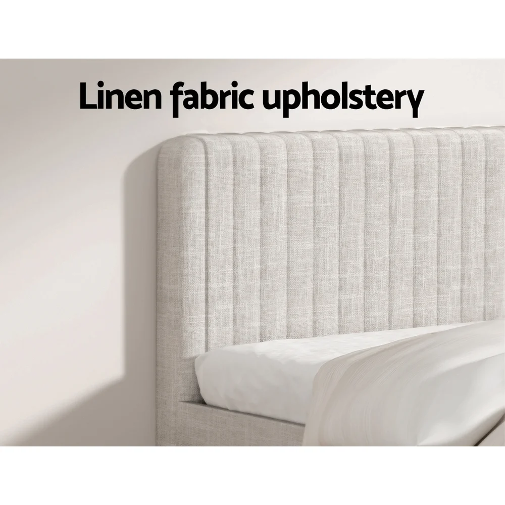 Add a touch of cosiness to your bedroom with our Artiss AMMY Bed Frame. Wrapped in premium faux linen fabric, the bed frame is aesthetically pleasing and extremely pleasant and smooth to the touch. The non-woven fabric is incredibly breathable to prevent moisture and bacteria build-up. The gorgeous cream shade enables you to style it in any bedroom, and it'll seamlessly blend into your home decor. The bed frame comes attached with a textured bed head and matching bed foot for a cohesive aesthetic. It has high-density foam padding, which makes it a cosy spot to sit back and relax, watch a movie, or read a book. Furthermore, the wide wooden slatted base provides a sturdy foundation and allows for proper ventilation for a fresh and dry mattress always. This bed frame has premium heavy-duty metal fixings and solid powder-coated steel legs, so you don't have to worry about stability. The bed frame is available in king and queen and fits Australian standard-size mattresses. Experience the sweetest dreams with the Artiss AMMY Bed Frame today.