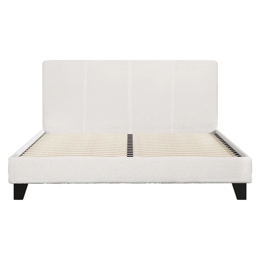 Add a touch of cosiness to your bedroom with our Artiss Neo bed frame. Wrapped in premium boucle fabric, the bed frame is aesthetically pleasing and extremely pleasant and smooth to touch. It will make you feel comfortable. The bed frame comes attached with a textured bed head. It has high-density foam padding, which makes it a cosy spot to sit back and relax, watch a movie, or read a book. Furthermore, the wooden arched slatted base allows the bed flex properly. It prevents partner disturbance. The slats are quite thick and will provide good support to your mattress. This bed frame has premium heavy-duty metal fixings and solid legs. So you don not have to worry about stability. It will keep the bed stable and prevent shaking. Additionally, this bedframe is available in single, king single, double, and queen and fits Australian standard size mattresses. And the gorgeous cream shade enables you to style it in any bedroom style. It will seamlessly blend in your home decoration.