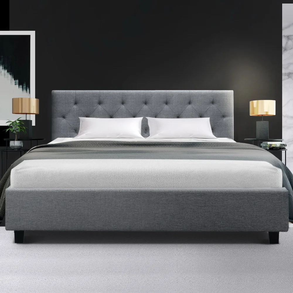 A great mattress deserves an equally fine bed frame, and the Artiss Vanke Bed Frame is the perfect companion for your favoured mattress. With its exquisite modern lines, elegant finish and quality faux linen fabric; this bed frame will bring some extra style that your bedroom has been craving for! It is well-crafted with solid wood slats that help distribute body weight evenly throughout the ensemble and the high-density foam within the fabric delivers generous padding. Underneath, sturdy legs with anti-slip floor protectors provide optimum support, and heavy-duty metal connectors help keep the structure stable and firm for the perfect nights’ rest.
