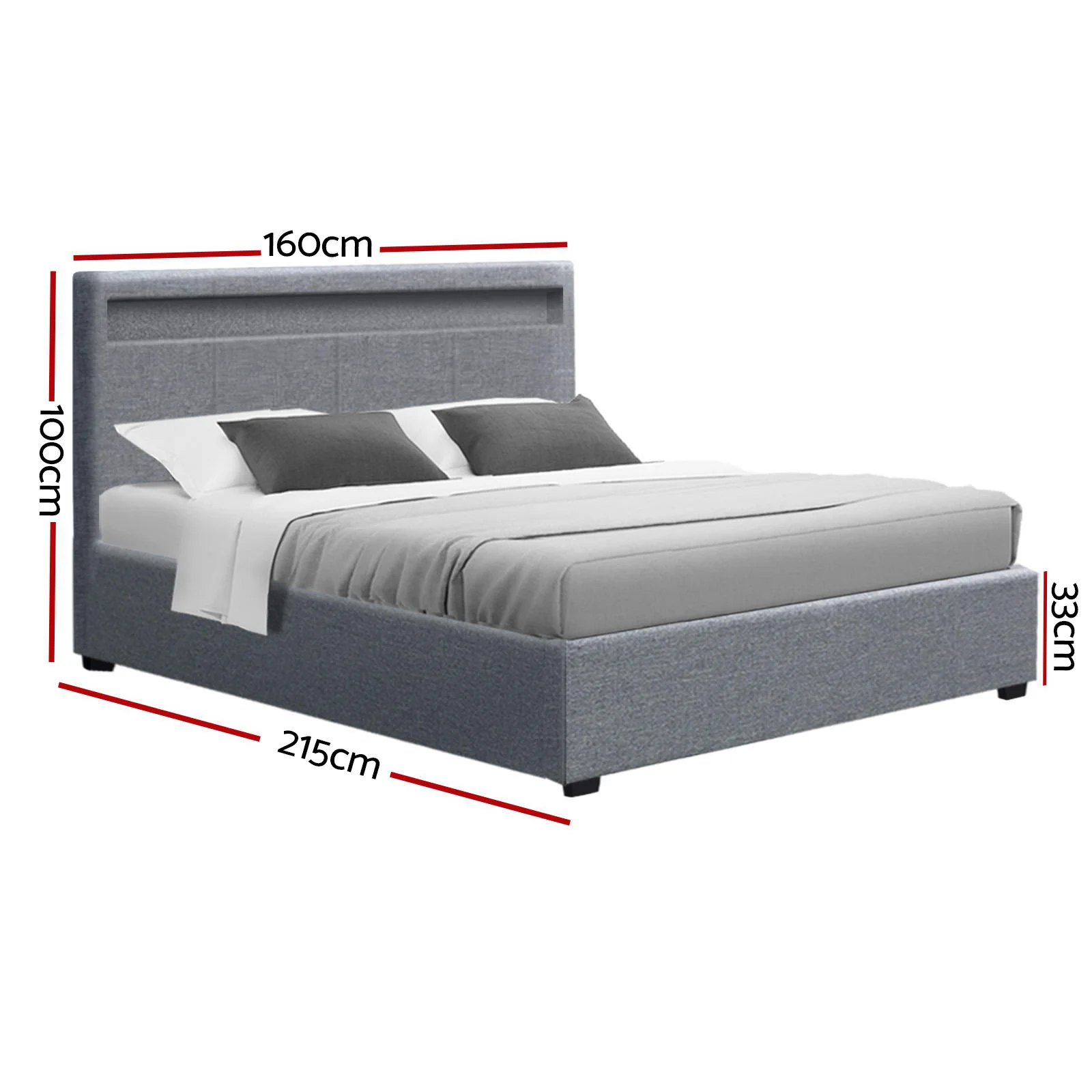 When is a bed more than a bed? When it uses our Artiss Cole Gas Lift Bed Frame. On the outside, this bed frame looks like just any other quality bed frame. Beautifully padded with generous foam and covered in faux linen fabric. Strong steel frame with high grade steel centre rails, heavy-duty bars and arched slat base. Large and comfortable headboard. But with one easy gas lift of the bed base, the bed frame becomes an instant storage area with acres of space for your bedding essentials. Simply store your extra pillows, bed sheets, cushions and more in the storage compartment and hide them away for the season. Even better, you no longer have to fumble in the dark for a light switch in the middle of the night with this bed frame. It comes with built-in LED lighting that can be customised into 16 different colours and 4 flashing modes to suit your preference. Not only will the illuminated bed frame create a beautiful ambience, it will also save you from buying extra bedside lamps or nightlights. So do not just get any bed frame, get this 3-in-1 bed frame to expand your home storage capacity and light up your nights with just a lift of your hands.