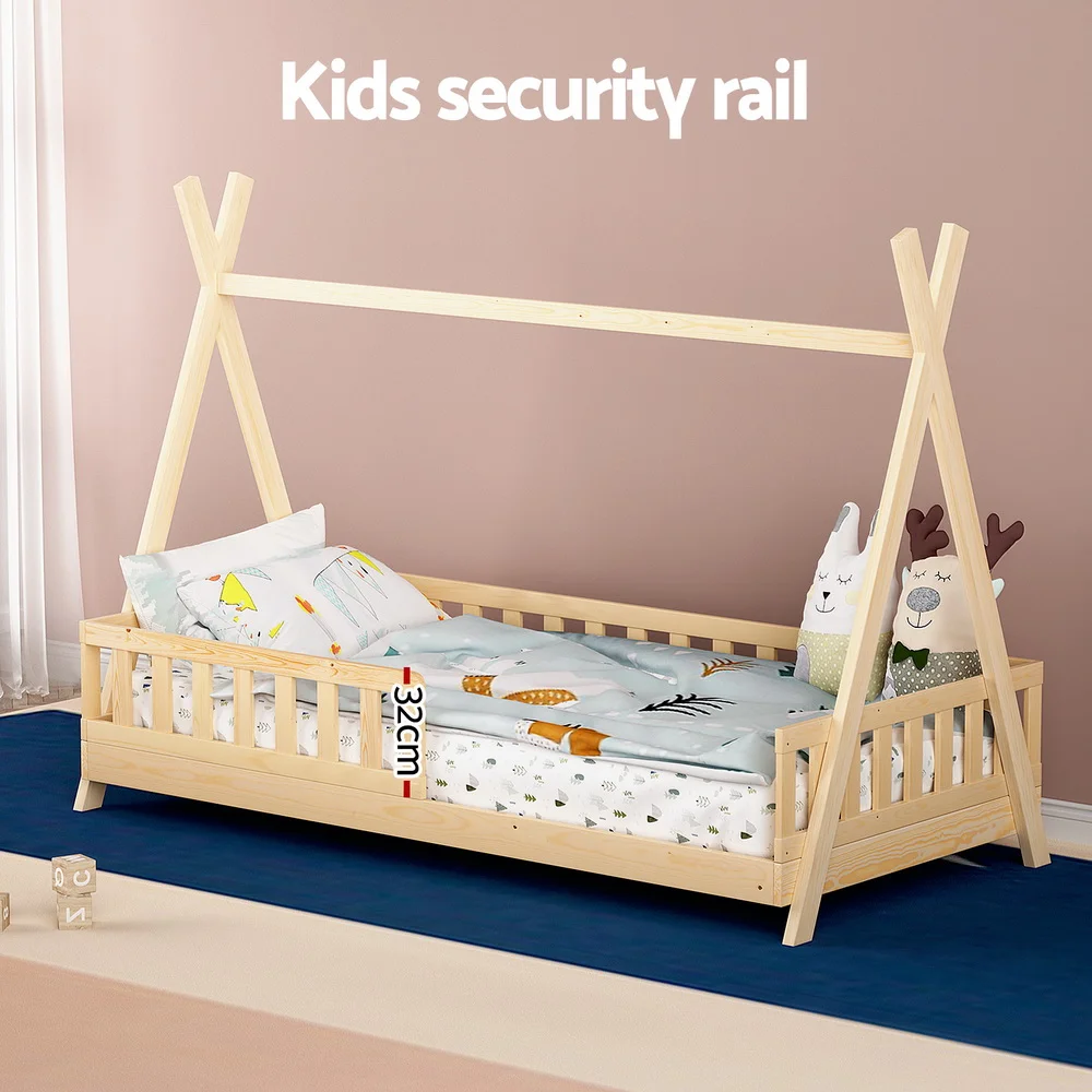 Introducing our child-friendly Artiss bed frame with rounded edges. Crafted from solid pine wood and reinforced with sturdy plywood slats, it offers stability and durability. Easy to clean.