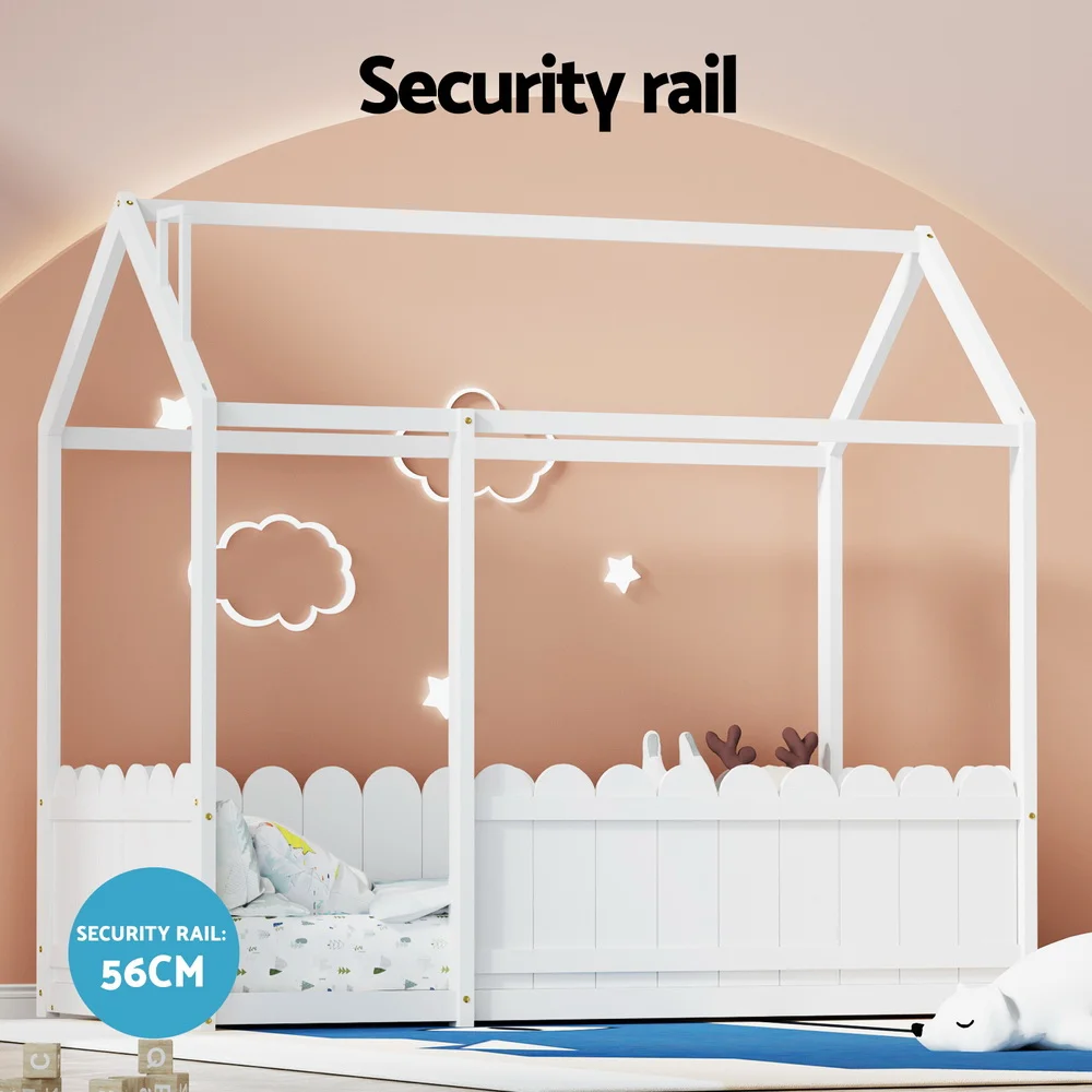 Artiss Bed Frame Wooden Kids House Frame White CASA