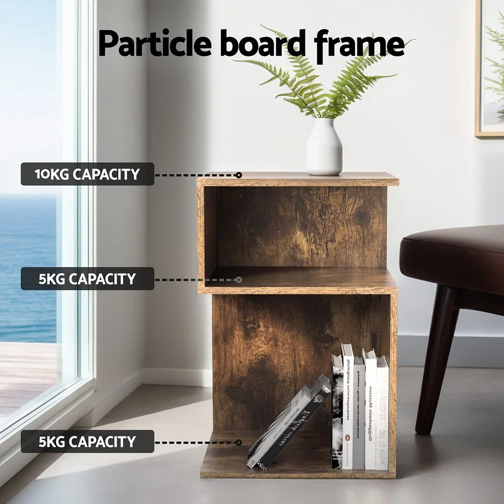 Elevate your living space with the UMENI Bedside Table from Artiss. This artistic, contemporary piece will blend in nicely with most home décor and remain trending for years to come. Made from a thick particle board with a wood grain paper finish, the S-shaped bedside table is durable and long-lasting. Featuring a narrow top shelf and a generous bottom display shelf, the bedside table makes it easy to store your bedroom essentials in an easy-to-reach place. Floor protectors keep the unit in place and prevent scrapes and scratches on your floors. The smooth surface makes the bedside table easy to clean and maintain. With simple assembly instructions, you’ll be able to put together your new bedside tables in no time. Elevate your bedroom today with the timeless UMENI Bedside Table from Artiss.