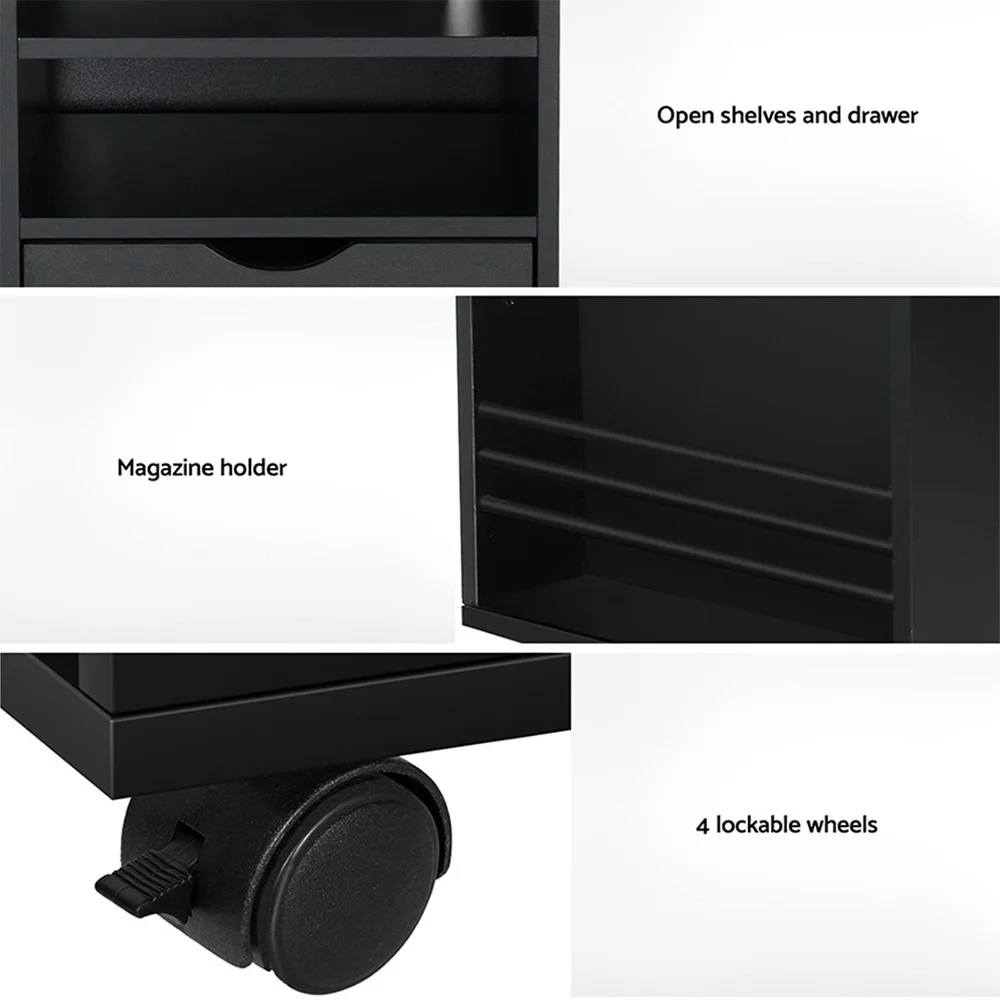 For a flexible and innovative bedside table, look no further than the Artiss Tala Smart Bedside Table. As a combination bedside table and laptop tray, you'll be able to seamlessly transition from sleep to work or entertainment. With three adjustable lighting colours, you can set the perfect mood every day and night. An open tabletop, two open shelves, a magazine holder and a drawer provide plenty of room for your nighttime essentials. Charge your devices using the USB and type-c charging ports. The laptop desk features a generous tabletop and anti-slip support, and has adjustable height, tilt and rotation to get that perfect working angle. With four smooth and lockable wheels, you can move the unit around the home as required. Working from home has never been easier with the Artiss Tala Smart Bedside Table.