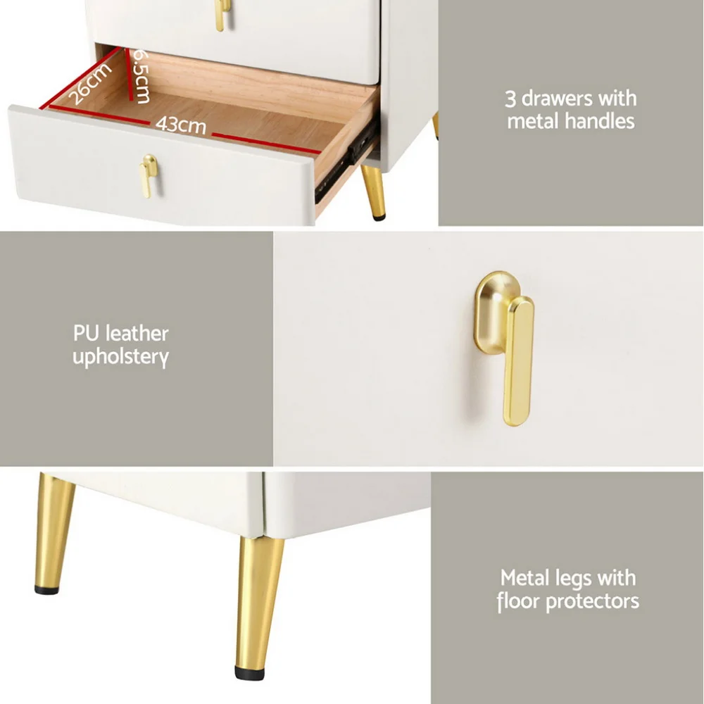 Crafted with premium PU leather upholstery and a tempered glass tabletop, the Artiss Smart Bedside Table is both durable and stylish. Three spacious drawers with smooth metal runners and sleek metal handles provide plenty of storage, while the sturdy metal legs with floor protectors ensure stability. It's easy to maintain making it the ultimate companion for a tech-savvy lifestyle.