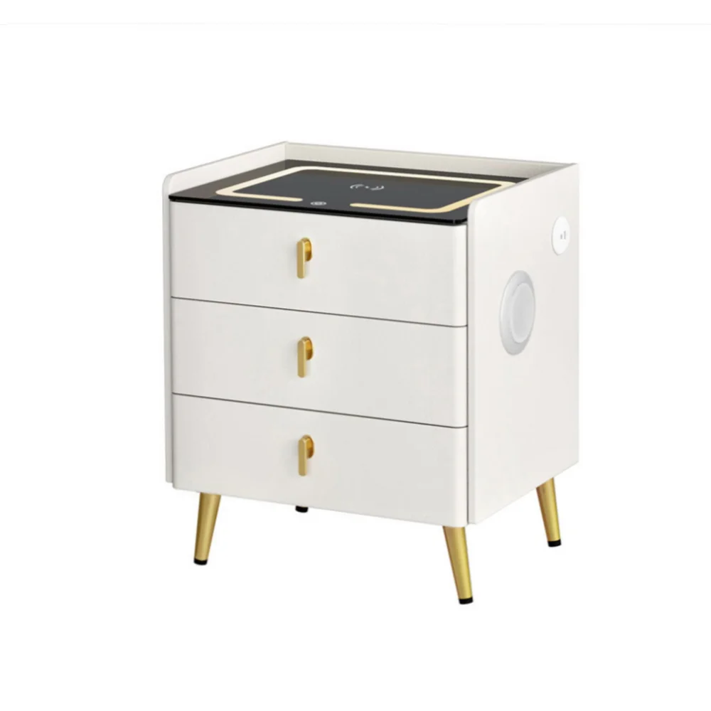 Elevate your bedroom with the Artiss Smart Bedside Table, a sleek blend of modern functionality and stylish design. Featuring wireless charging, 3 colour-adjustable LED lights, and dual Bluetooth speakers, this bedside table offers more than just storage. It includes a USB port and a type-C charging port, both powered by an SAA adapter for reliable performance.