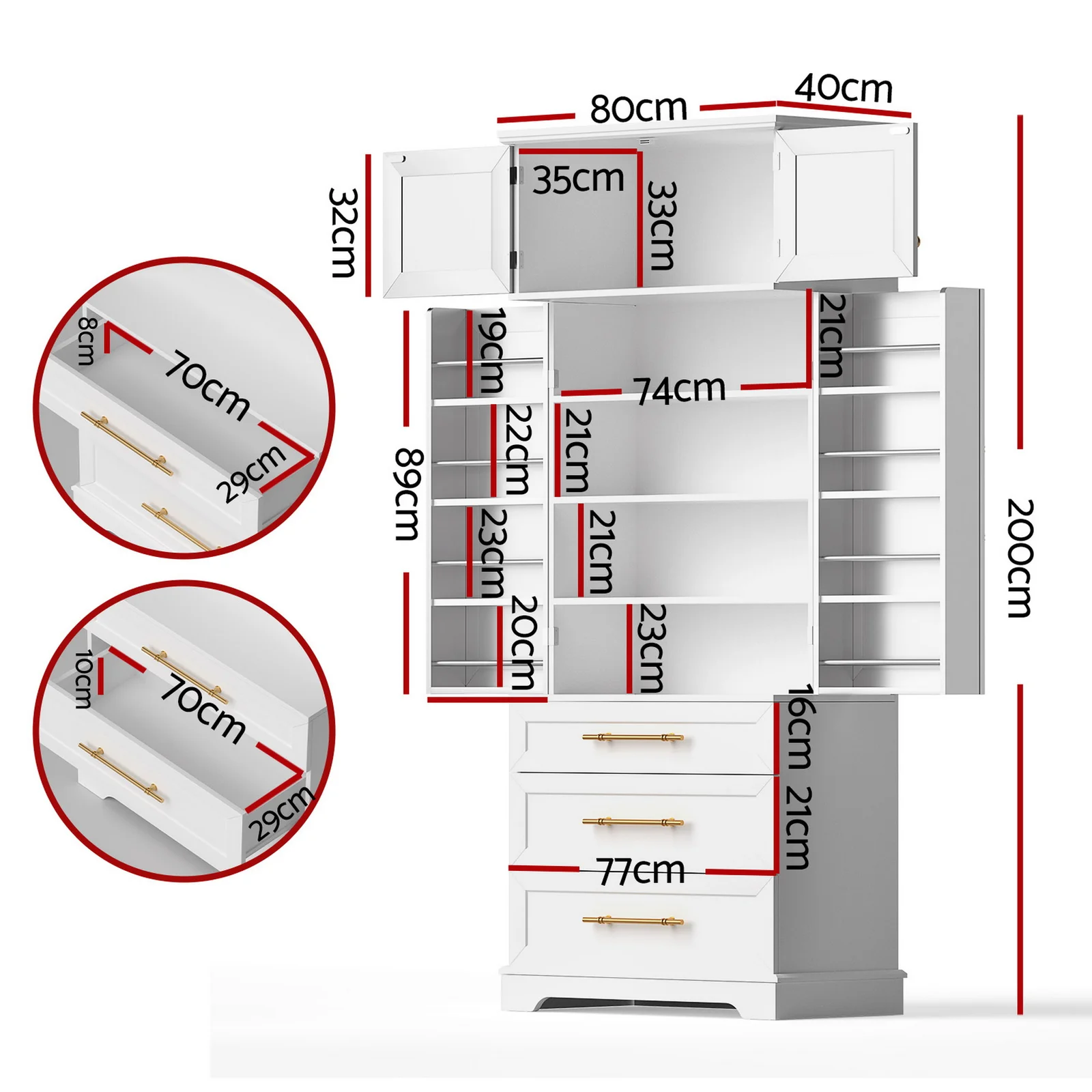 Overall dimensions: 80cm x 40cm x 200 cm