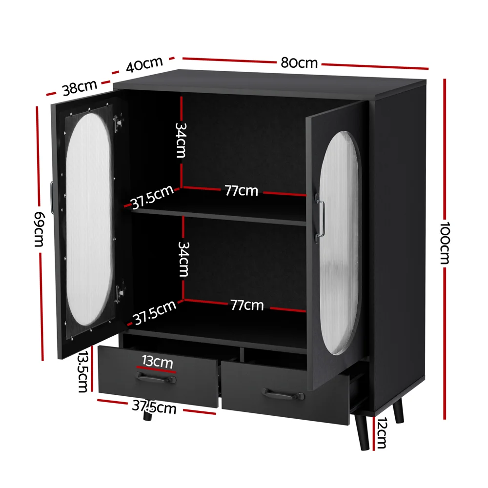 The Lency Buffet Sideboard is a stylish and functional storage solution for your modern home. With two large cabinets and two generous drawers, the cabinet offers ample storage space to keep your belongings organised and clutter-free. The fluted plastic door panels add a touch of elegance while the magnetic door fittings ensure secure closure. Solid pinewood legs keep the cabinet standing tall, and the quality metal hinges ensure durability and longevity. For additional safety, your purchase includes an anti-tip kit to secure your cabinet to the wall. Cleaning and maintenance are a breeze, making this sideboard a practical choice. Plus, it is easy to assemble, saving you time and effort. Upgrade your living space with the Artiss Lency Buffet Sideboard today.