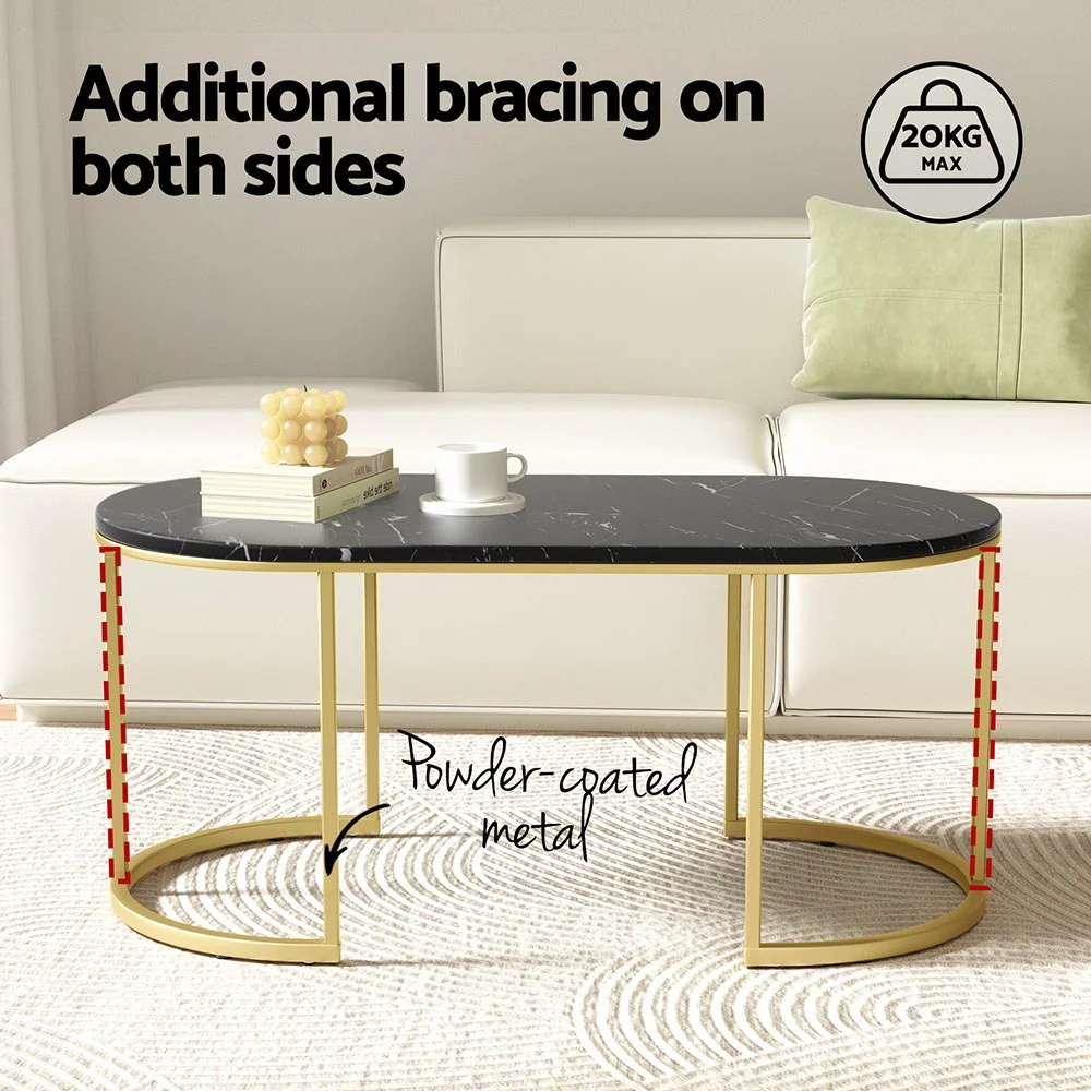 Introducing our stylish Artiss Coffee Table, featuring an MDF tabletop with PVC shrink-wrap and a luxurious marble finish. Supported by a robust metal frame with anti-slip pads, it offers easy maintenance and straightforward assembly for your convenience.
