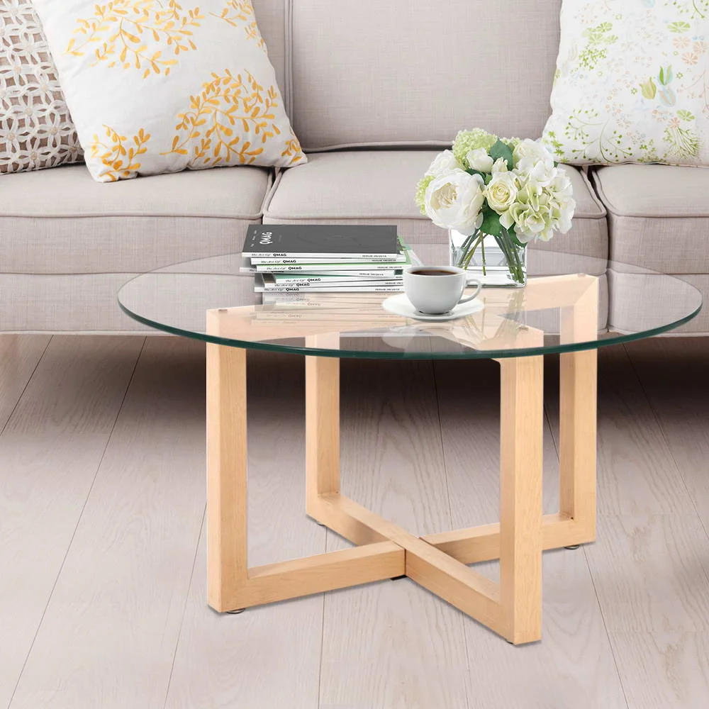 Artiss Tempered Glass Round Coffee Table - Beige
