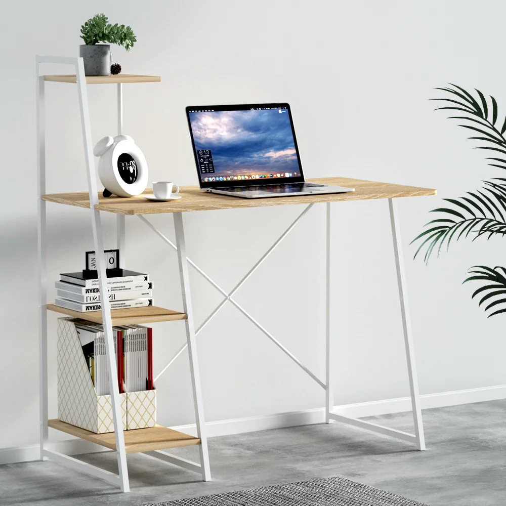 Spruce up your home office with this bright and spacious computer desk from Artiss. The premium particleboard desktop is a generous 100cm long and 50cm wide and features four built-in fixed open shelves for all your workspace needs and decoration. It has a 50kg weight capacity to carry all your essential equipment, whether you are using a laptop or a full desktop computer. It is sturdy and durable thanks to its powder-coated steel frame and x-shaped bracing for additional support. It has an easy-to-clean surface, smooth edges for safety, and anti-slip, anti-scratch feet to protect you and your floors. Whether you're studying or working from home, the Artiss computer desk is a perfectly stylish yet functional addition to your decor.