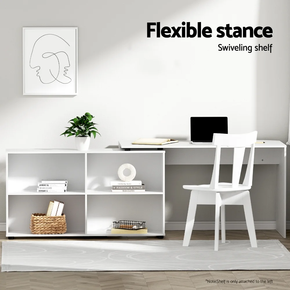 Add more utility to your normal work area with our Artiss Computer Desk. Made from durable particle board with melamine finish, the computer desk features a swivelling bookcase which can be adjusted at the most convenient angle to suit your space. L-shaped to use as a corner desk or the bookcase in line with the desk for a 220cm long surface. You can have better functionality and stability all round with four shelves of ample space for all your personal and work-related files and books and more. The classic white is an easy match for any décor and the simple, uncluttered design ensures timeless appeal in any room. Work smarter and more efficiently with our unique computer desk.