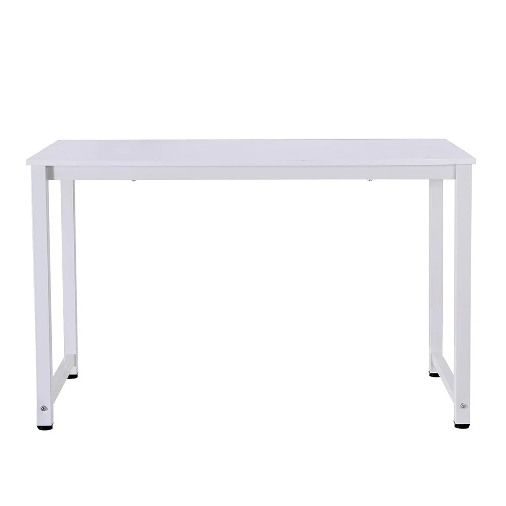 Conquer your workload in style and comfort with this versatile computer desk! The wide desktop provides ample space for your monitors, keyboards, and all your office essentials. While offering generous surface area, the 15mm thick particle board desktop maintains a sleek profile. The sturdy metal frame ensures stability, while anti-scratch feet protect your floor from damage. This modern and stylish desk has an easy assembly process and also prioritises your safety and comfort with smooth, rounded edges.